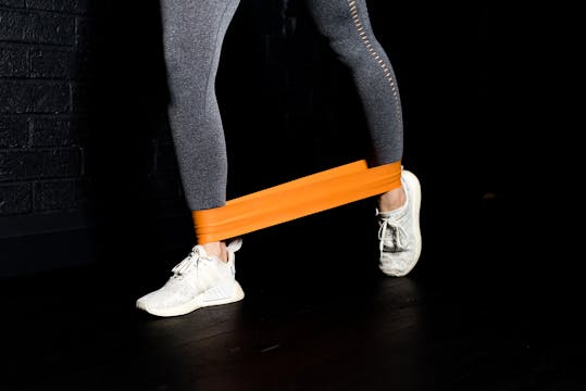 Upper focused workout using heavy dumbbells, a glider or towel, small pilates ball and a booty band.